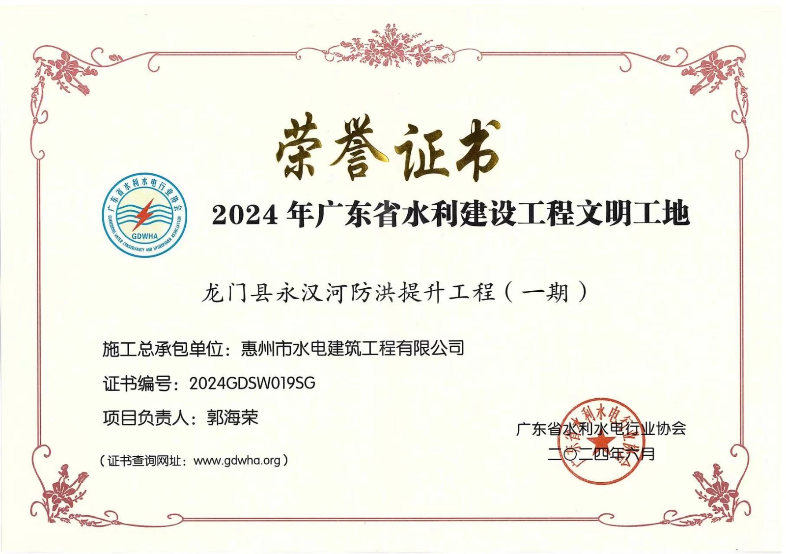 惠州市水電建筑工程有限公司成立于一九六四年四月,隸屬惠州市水務集團有限公司,是一家國有綜合性施工企業,主營水利水電工程、房屋建筑、市政工程等施工業務。公司擁有水利水電工程施工總承包一級、建筑工程施工總承包一級、市政公用工程施工總承包一級、公路工程施工總承包三級,公路路基、路面及建筑裝修裝飾專業承包二級,環(huán)保工程、機電安裝、河湖整治、輸變電工程專業承包三級等經營資質……