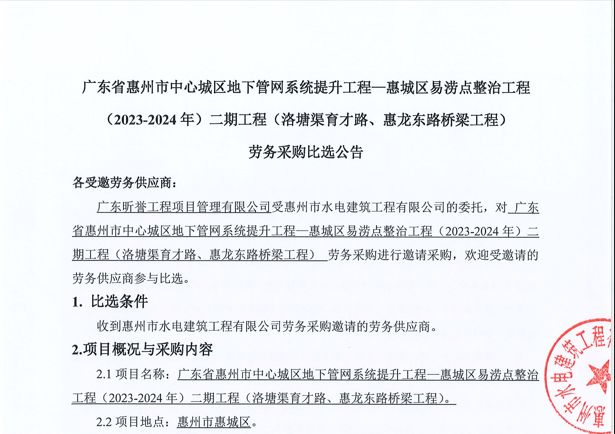 惠州市水電建筑工程有限公司勞務供應商庫擴庫評審結果公示……